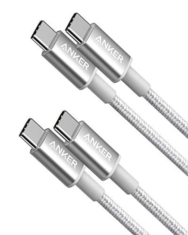 USB C Cable, Anker 2 Pack New Nylon USB C to USB C Cable (3.3ft 60W), PD Type C Charging Cable for MacBook Pro 2020, iPad Pro, Galaxy S20, Switch, Pixel, LG and Other USB C Charger (Silver)